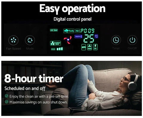 Timer Setting: Set the purifier to automatically power off after 1-8 hours, conserving electricity. Perfect for when you're away shopping or enjoying outdoor family time.