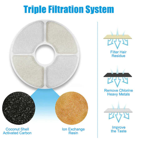 Cherish Water Fountain offers a Natural Way to provide your Pet with Fresh, Filtered water. With Free-Flowing Water and the Gentle Sound of Running Water, the Pet Fountain Generates an Inviting Environment that Encourages Pets to Drink More Often. This helps keep their Kidneys and Bladder Hydrated and Flushed.