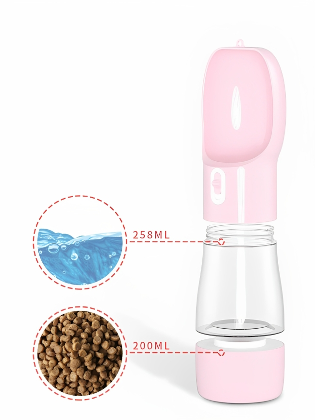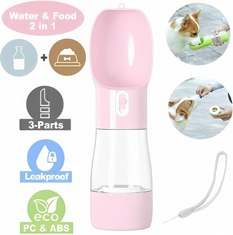 ✅ Portable And Lightweight: Enough capacity of 260 ml water with 200 grams of food and compact water bottle design is great for your pet dog or cat when outdoor walking, running, hiking, traveling or playing, etc. You can put it into a backpack or hang it on your hand with a sling rope, very easy to carry anywhere you want