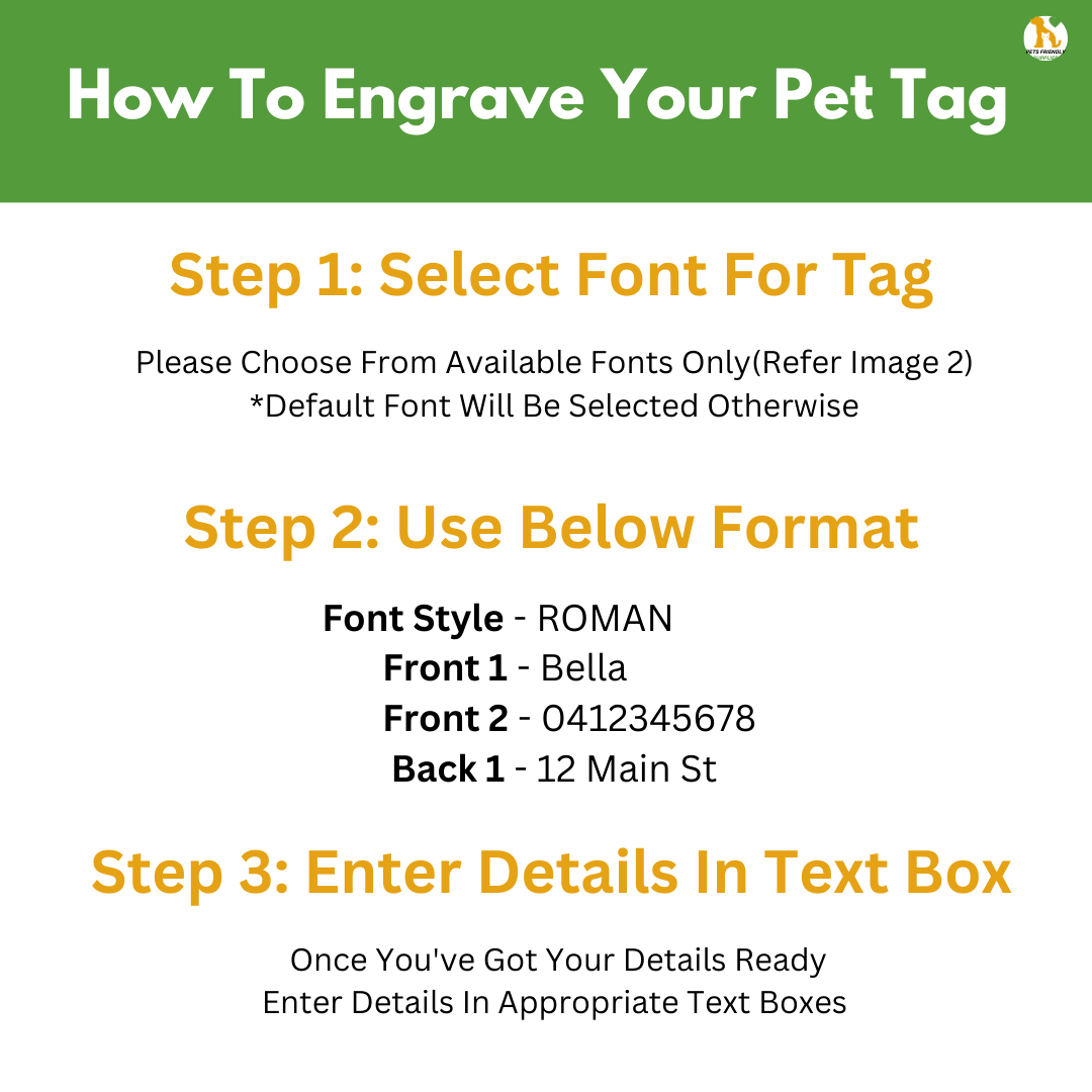 Just a quick heads-up! You might notice two different colors in the examples, but don't worry, your tag will be the same color on both the front and back sides. We just wanted to give you a little peek at the possibilities! š
