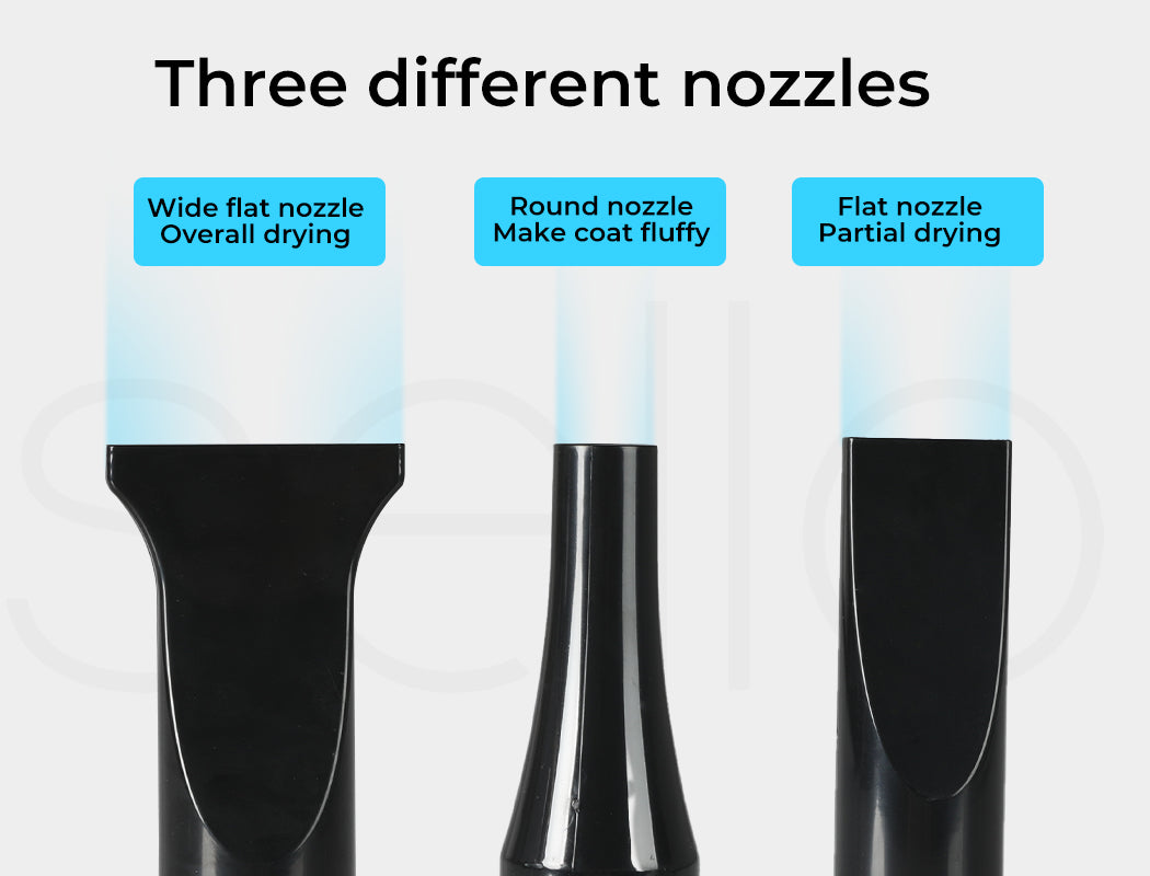 ✅ Multiple Nozzles – Every pet has a different fur coat. Multiple nozzles give you a choice to use the best for your pet